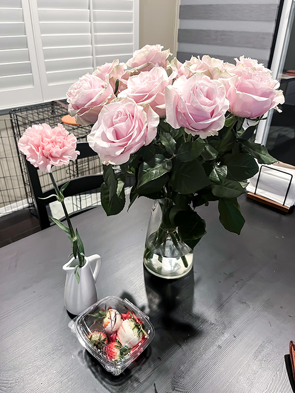 On Valentine’s Day my manz brought a few chocolate covered strawberries and a little single flower to add to our small assortment! The flowers from the week before opened up so much