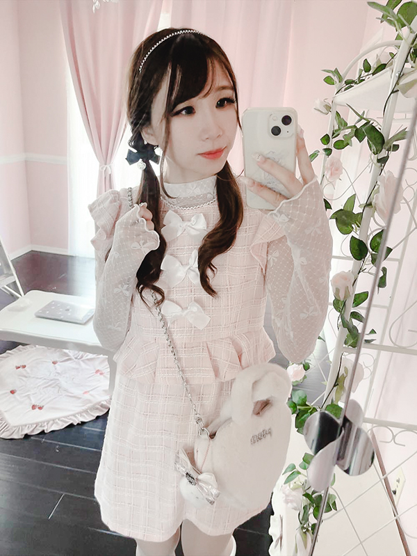 I wore this Evelyn onepiece that I had been eyeing ever since it came out, but I wasn’t sure if it was going to fit… but since someone listed it for abour $15, I thought it was worth a risk Thankfully, it worked out! It’s quite pale in my photo but it’s actually a very sweet pink, which I adore