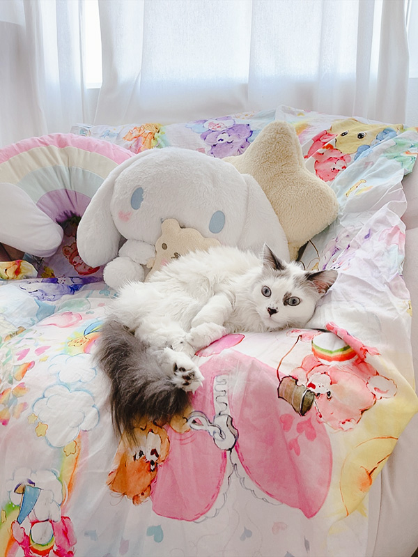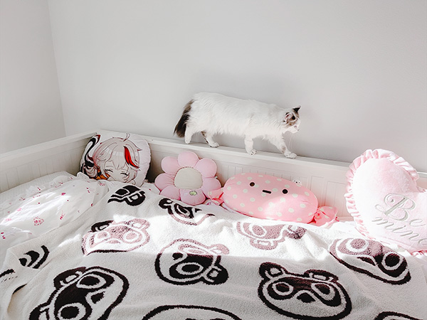 Miumiu has been doing really well lately, after she was sick the last month, we’ve been so worried but thankfully she seems to be doing well again Her new favourite lounge spot seems to be this little couch now!