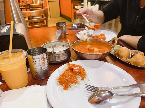 The food was really delicious, we ended up sharing a curry and samosas as well I was so happy, he also got me a lassi that ended up so refreshing and sweet We definitely were happily stuffed afterwards!