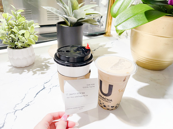 Afterwards, we went to Tokyo Central to get groceries and suddenly got a boba craving, and decided to check out Ümacha which newly opened in Mitsuwa. I got a hot jasmine milk tea like my usual and my manz got the top #2, brown sugar milk tea.