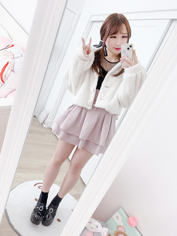 I was very happy with this simple outfit, it feels very cute I was so happy to find this Secret Honey top, I think Amber shared a similar one months ago in our server, but I missed that listing and thankfully found this cheap one. It’s very versatile and pretty. The Mars skirt is suuuper short though I really like the design