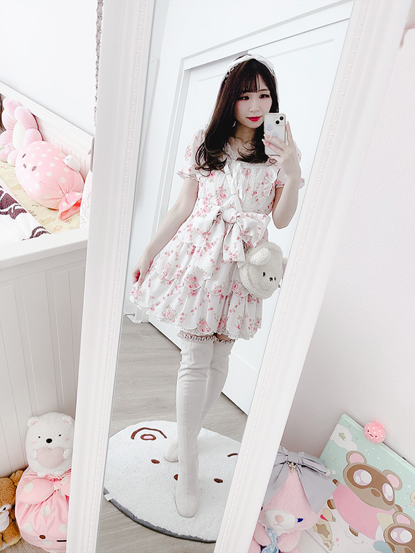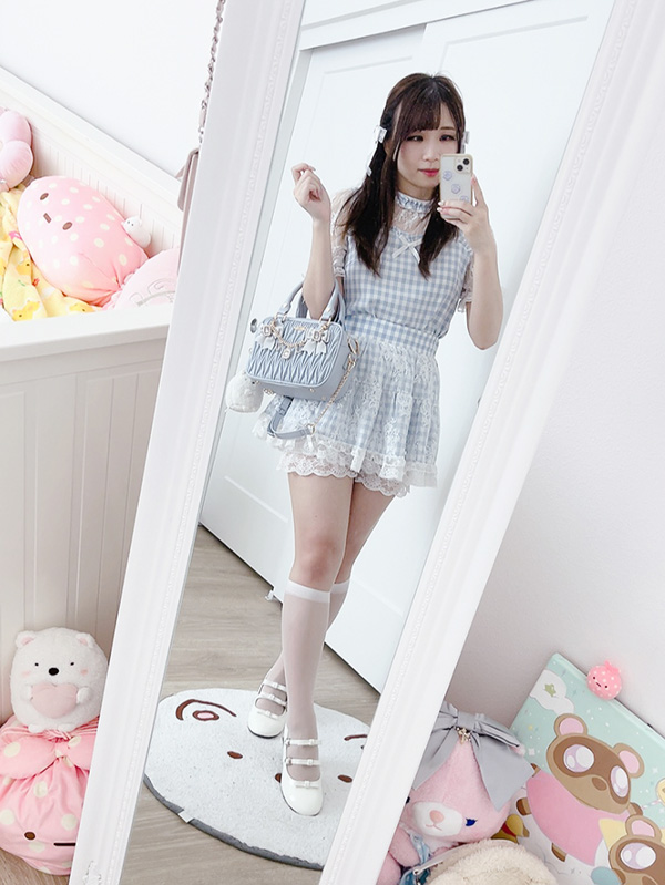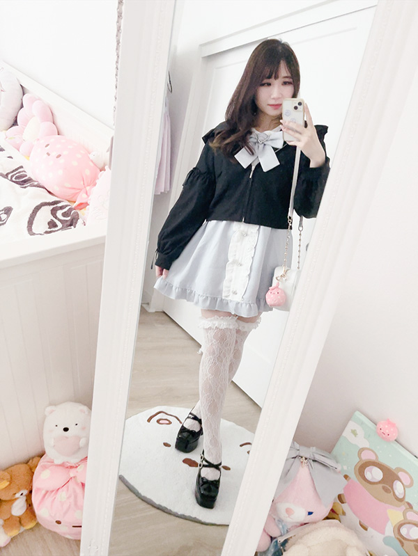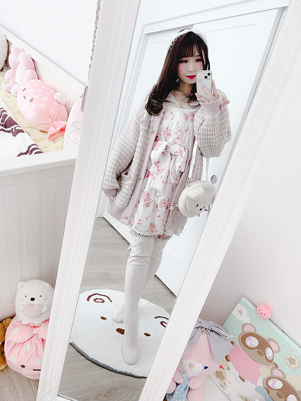 I chose to wear this scalloped Liz Lisa dress as it’s one of my favourites. It’s a bit more of a spring/summer item, so I tried to autumn/winter-ise it by layering with my Evelyn lace tank top, pairing with a very “winterish” knit cardigan, and my 2nd favourite winter item, long boots (the first being coats of course)