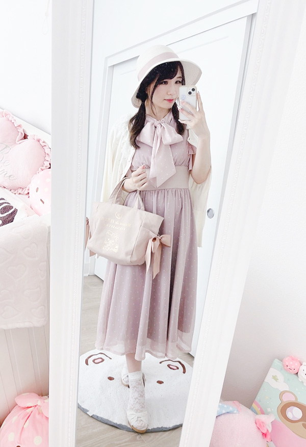 We had an outdoor picnic at work, so I wore this summmery season muted outfit featuring lots of assorted j-fashion brands I really love this dress since it’s pink with white polka dots, like furoshiki I was surprised that it was surprisingly stretchy and roomy!