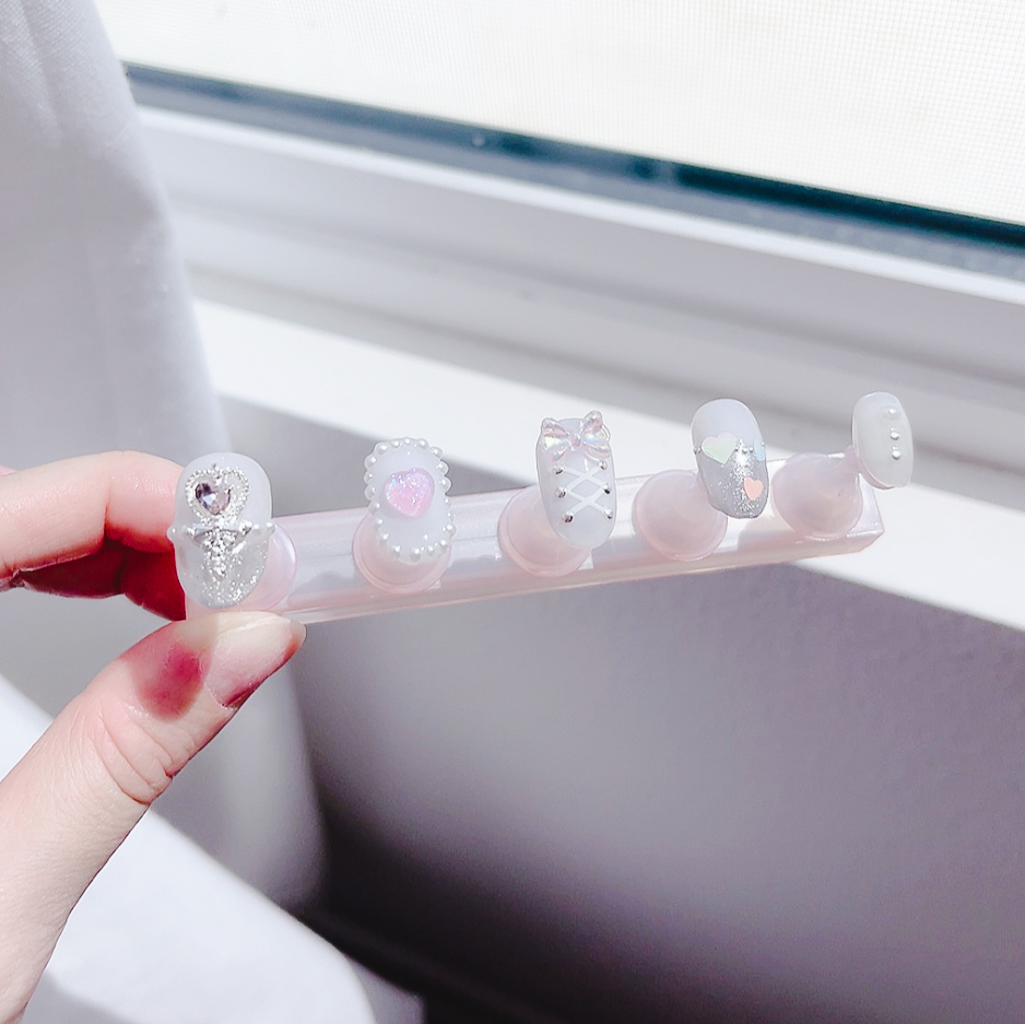 They’re press-ons, which I don’t usually do, because I’m not very good at keeping press-ons… on. I thought this would be a fun chance to try different designs that I can rotate out quicker and practice different nail techniques, though, so we will see.