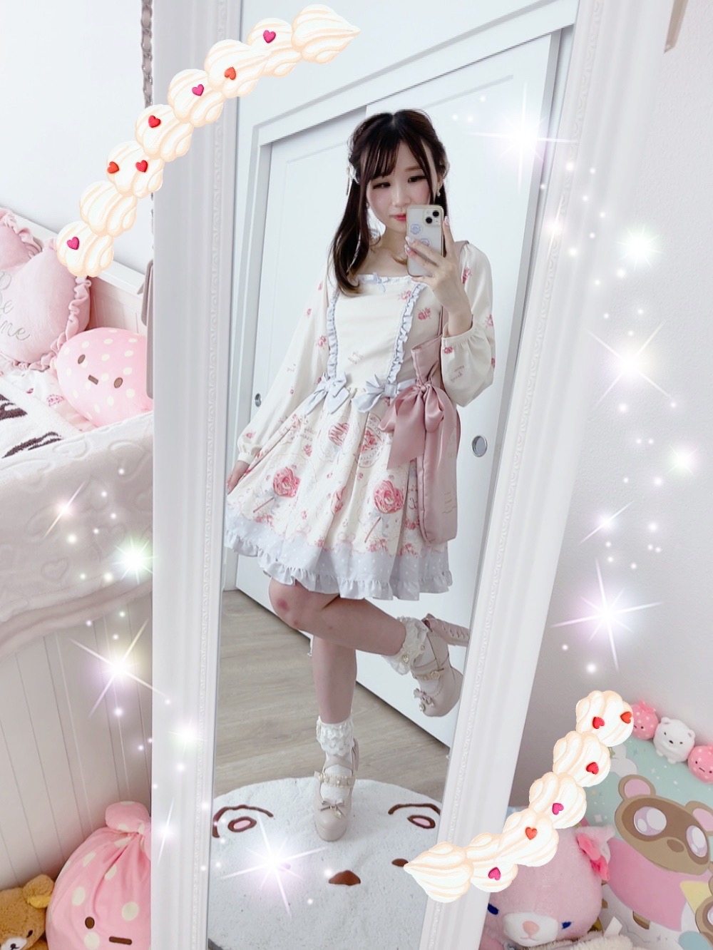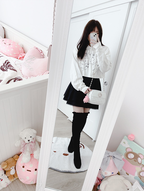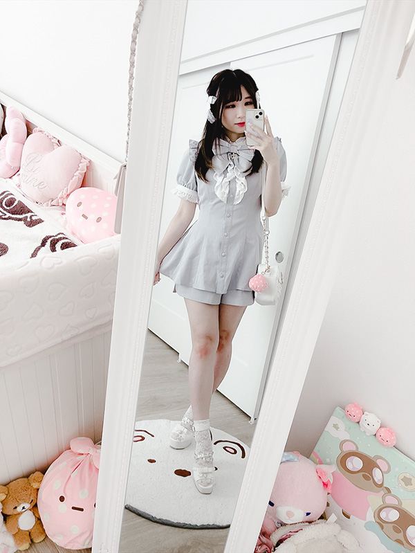 I’ve never owned any setups from Secret Honey but I’ve always been interested in trying them out since I always see Amber in our himekaji server wearing suuuch cute setups from them I’m really glad I sprung for this design since I absolutely love the neutral gray and how comfy it is! I like how the detailing is simple and the fabric is lightweight yet not loose or prone to wrinkling.