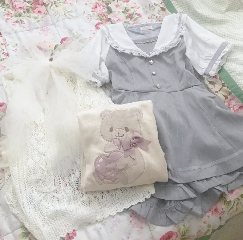 Got a few things from Liz Lisa recently and I am loving the sailor setup!! I’m so happy I sprung for it, though at first I wasn’t sure if it was too cute for me or wouldn’t fit… I was sold the moment Didi said it’s just like a ghost pokemon The bear sweater was a MUST (though I would’ve preferred pink the cream is quite cute!) but I haven’t figured out how to coordinate it yet as it’s quite large and strangely fitting on me (such is a life with sweaters), and the momonga cardigan is super cute but OMG I do not know how to wear it haha. I think I would love to do a kind of outfit challenge with it at some point to try to figure out how to wear it