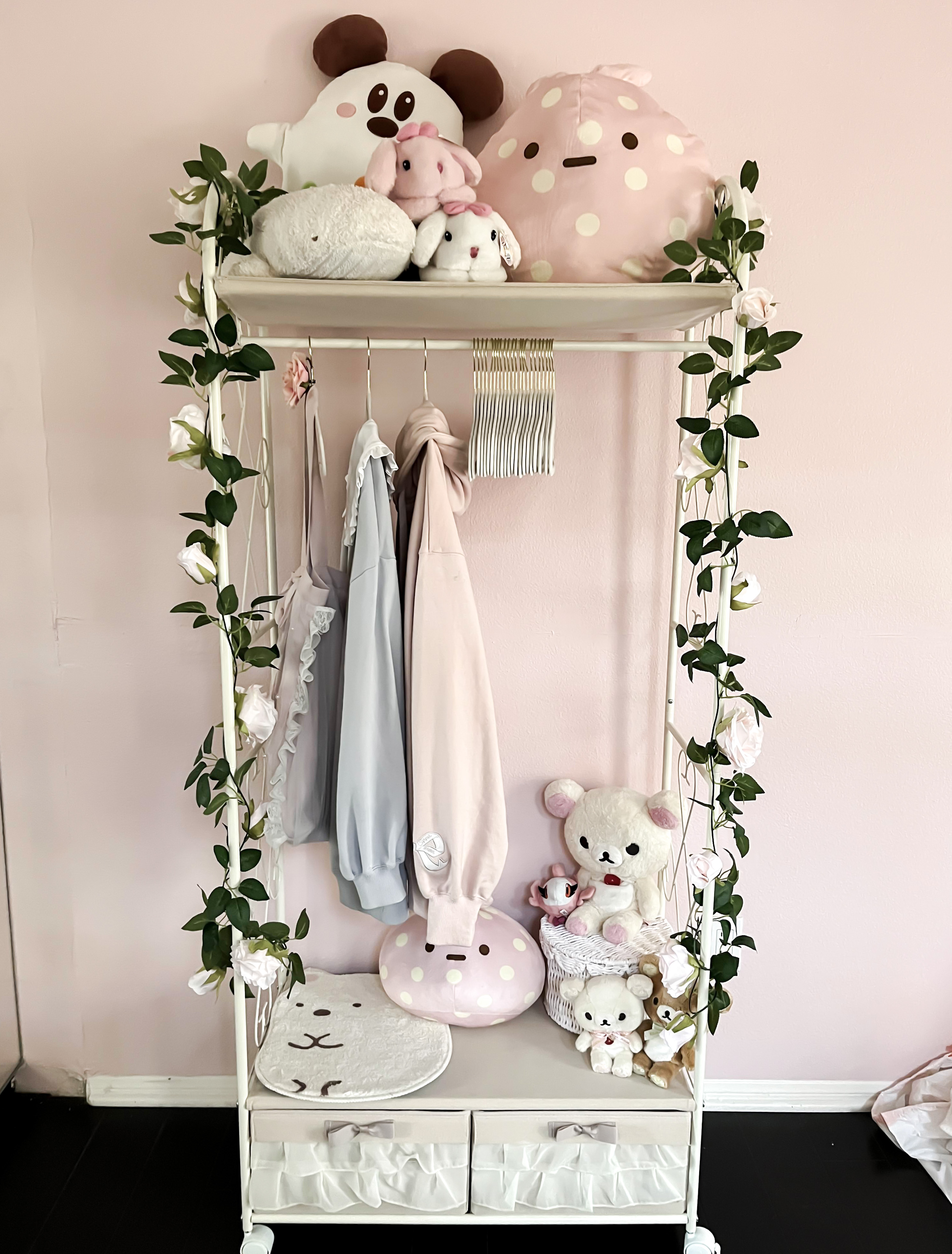 I haven’t really set up my room, but I’ve been feeling better when I see more girly things at the place, so I arranged this hanger rack to display a few things that make me feel happy. It matters so much to me to have a thoughtfully curated space, so after a lot of think talking with my manz - he really wants me to feel more comfortable at his place - I’ve been trying really hard to take up more space there.