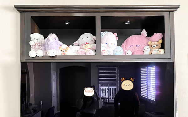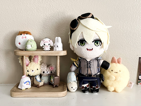 The two empty spots by the TV got their share of plushies too! I’ll likely redo this once I can figure out how to fill the empty spots a bit more, but I’m happy with it for now since everyone found a spot
