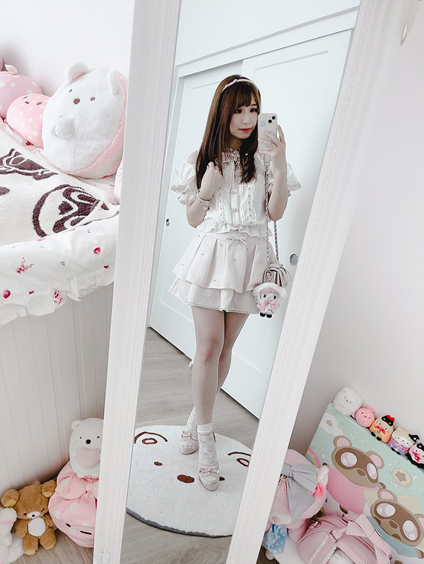 This tweed-style double layer skirt from Liz Lisa overtook my brain when it came out I really love tweed texture Since I wear a lot of plain or nonprints, I feel like it adds another layer to a muted outfit.