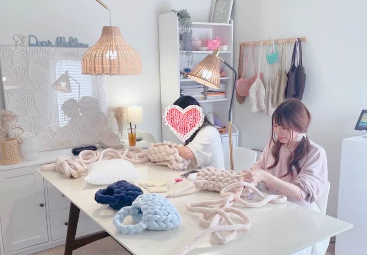 For my birthday, my dangie booked a “big knit” class to take with me and we made these CHONKY knitted goods that are pretty trendy in Korea! Since she already made the bag, she opted to make a pillow this time, which turned out very cute