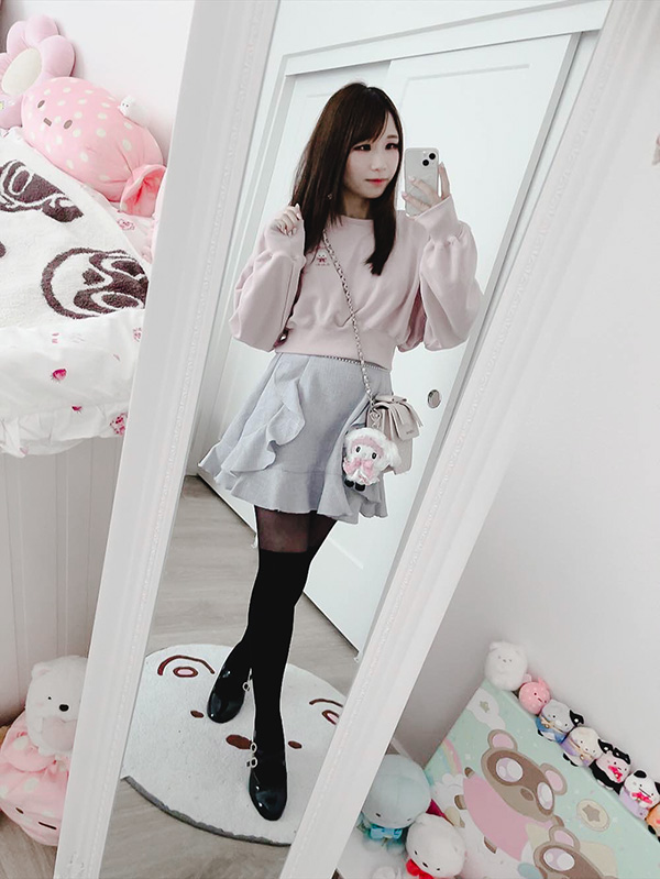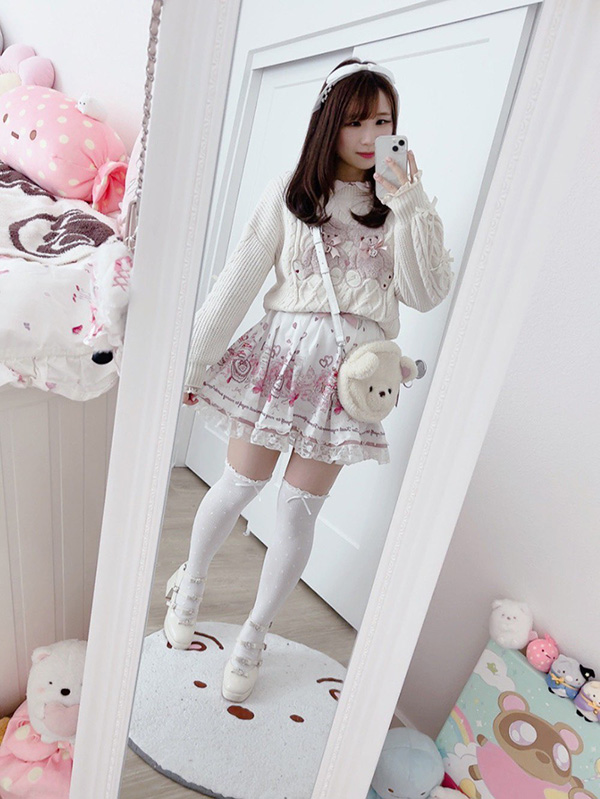 I realised, don’t I wear the twin bears knit quite a lot? I think it’s one of my favourites, for sure. It makes me feel very cosy and comfortable, which I feel like is a bit hard to find since I don’t like the touch of fabric sometimes. I paired it with the skirt from Many Hearts setup, which I felt lucky to own since this setup originally sold out quite fast but thankfully, reran as a short sleeves version and so I was able to snag this!