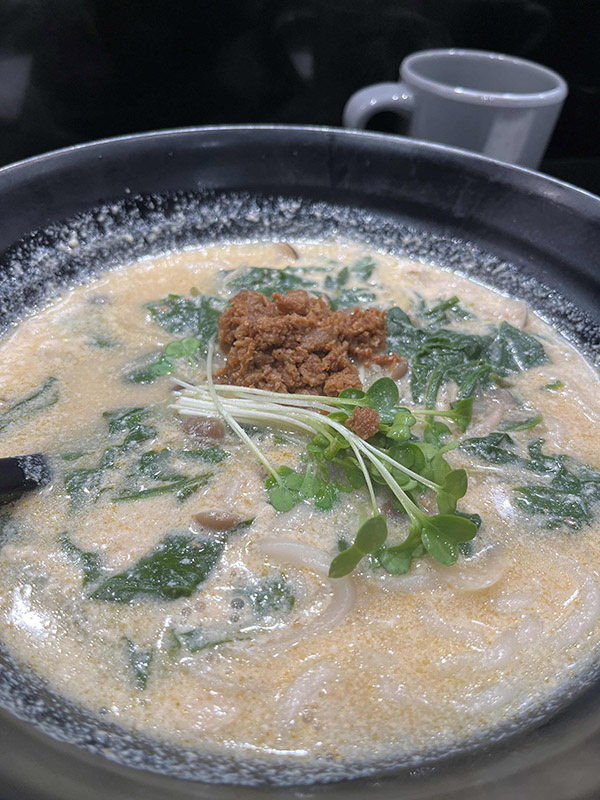 I ordered the “soy milk dandan udon” which was on their veggie menu, but I’ve never had anything that tasted like this before… to be honest, it was quite difficult to eat.