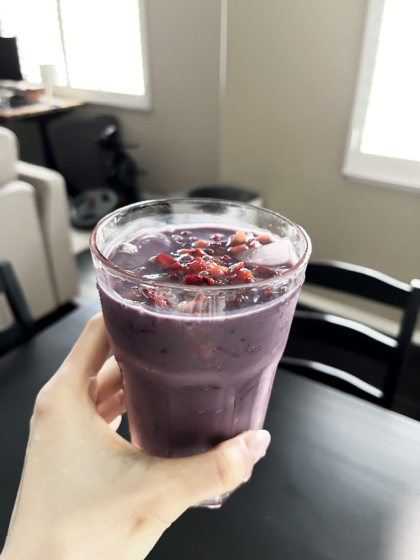 With the leftover ube latte, I made a strawberry ube second serving of it the next day. The espresso was so strong it still overpowered the new additions I put in hehe