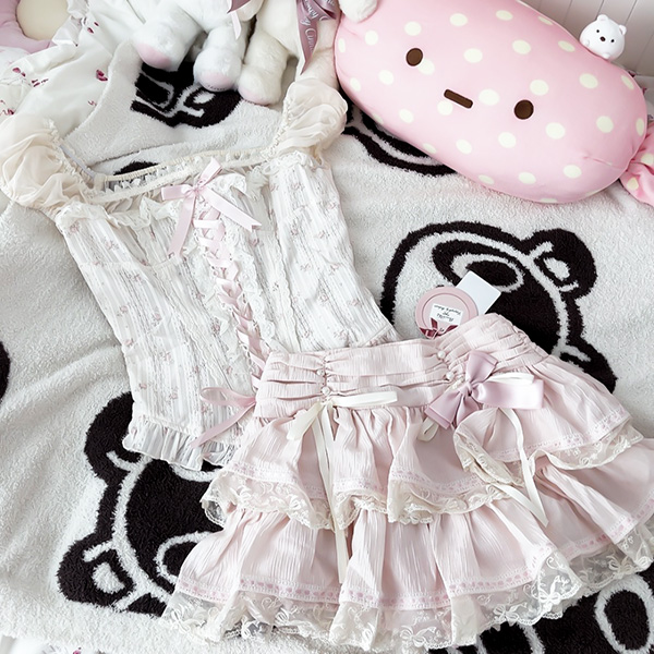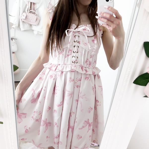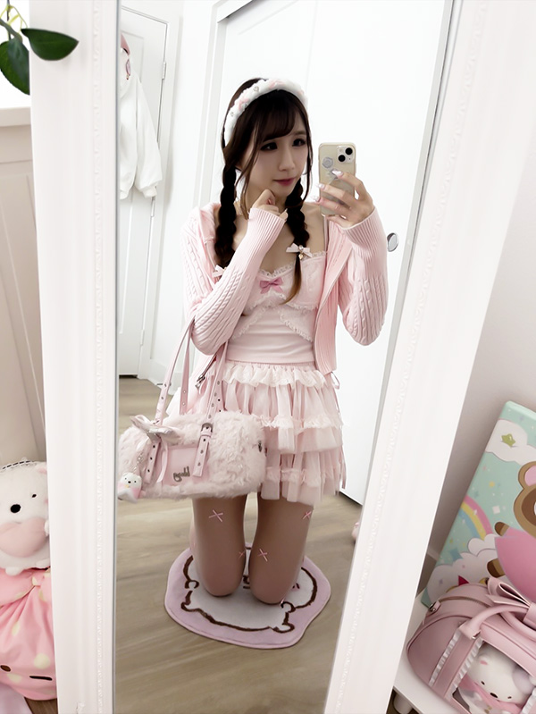 That said, the tiered pink skirt is SCANDALOUSLY short. I cannot recommend this for anyone over 5 feet. It’s basically a “my bf will have to pick up anything I drop on the floor” outfit
