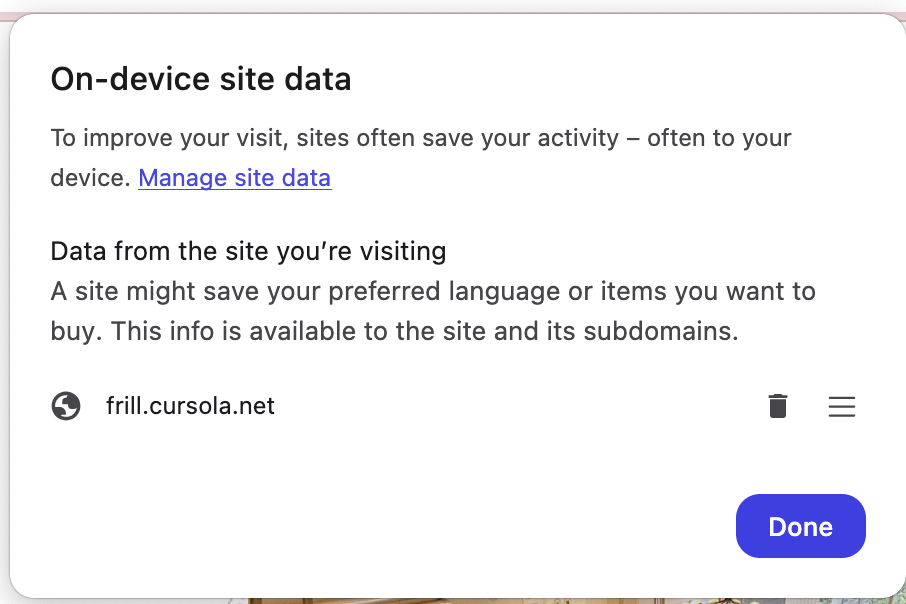 1. Click on “Manage on-device site data”