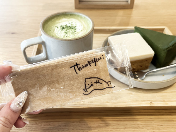 When they serve you your food/drink, there’s a little doodle on the napkin wrapper