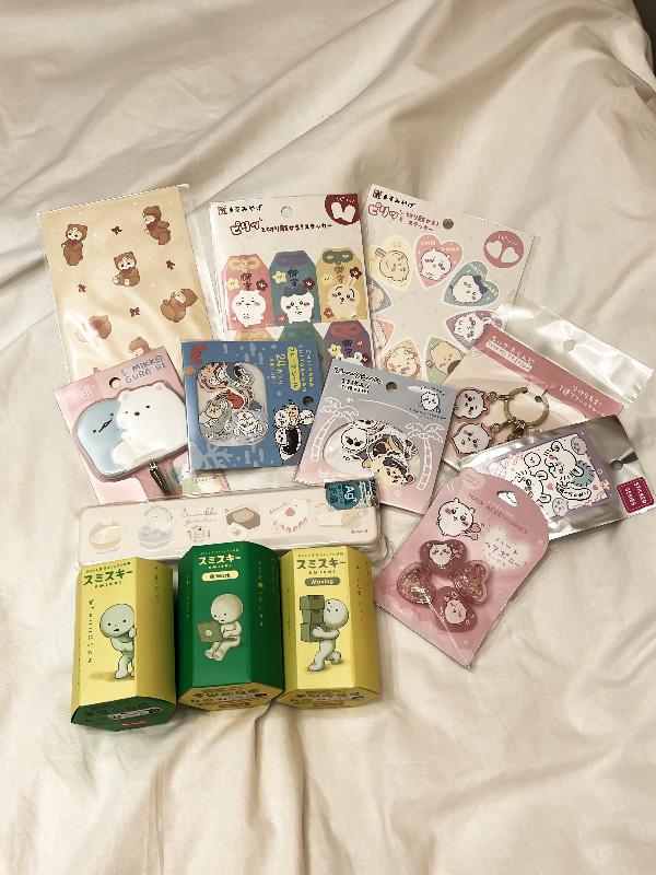These were my buys from Kiddyland My manz likes the green guys so I got a few for him! Most of these were gifts, but I was really excited to see the cute chiikawa hairties, sumikko portable utensils set, and tokage/shirokuma hook which I got for myself