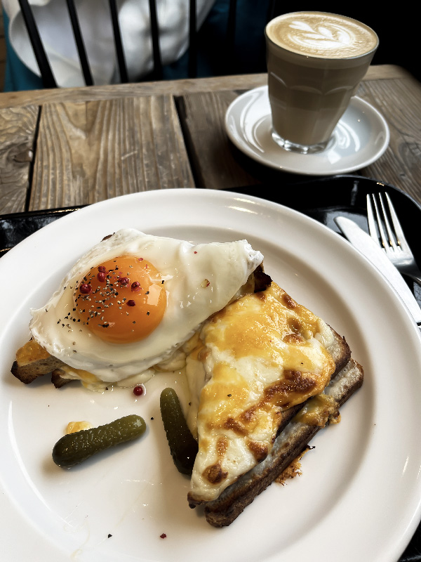 I ordered their croque madame (requested without meat), a cafe latte, and when I finished I bought their specialty salted butter melon bread to take with me. They were really busy so they mixed up my drink order and accidentally gave me a regular coffee, but fixed it really quickly once I requested the cafe latte switch.