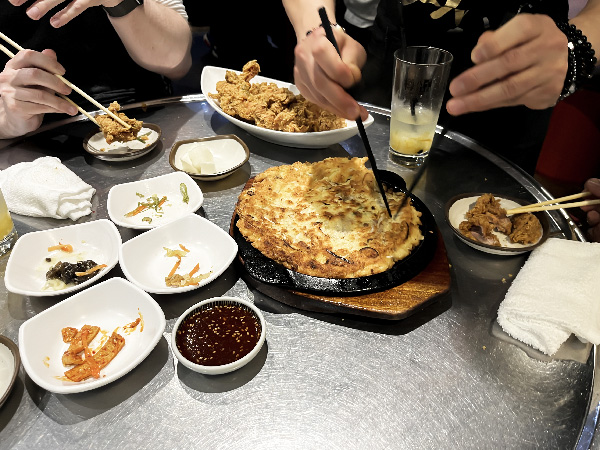 We had a silly moment where Sidney requested the waiter for a suggestion for “someone who doesn’t eat meat” and “someone who doesn’t eat spicy” and we ended up with this pancake-like dish, which we then realised had meat in it… the waiter then proceeded to try to demonstrate that you can take the meat out manually, but from how he was performing it for us we thought it looked like he was offering to feed me the pieces lol Harmless miscommunications end up pretty funny on travels!